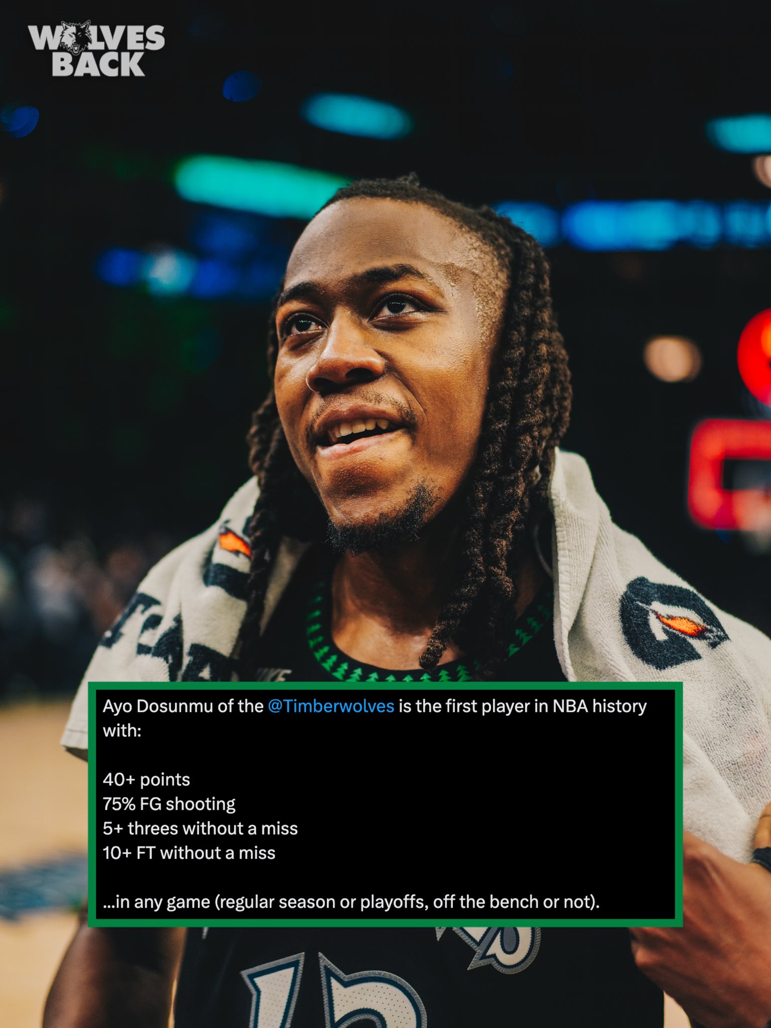 在迪文琴佐和爱德华兹接连伤退的情况下,多森姆迎来大爆发,第三节3中3独砍12分帮助森林狼反超比分,末节7中5独砍15分带队拉开分差,轰进关键三分以及连续四罚全中,全场高效轰下43分,带领森林狼拿下赛点,成为森林狼G4赢球的头号功臣,赛后多森姆获得比赛用球。