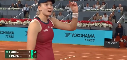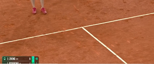 这一幕发生在第2盘第8局,当时郑钦文的发球局,郑钦文已经先得2分。随后郑钦文一记发球,