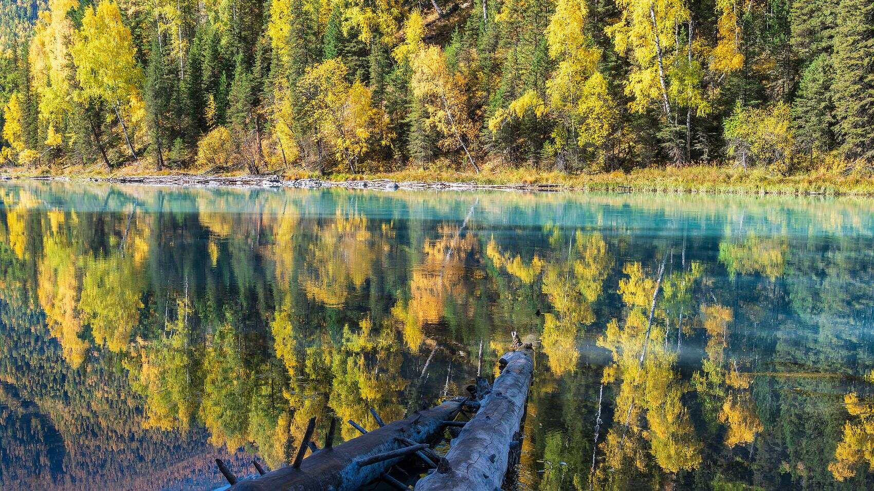 喀纳斯的秋极致而纯粹,翡翠般的喀纳斯湖与环绕它的西伯利亚泰加林相互映衬,共同构成一幅浓郁的油画。