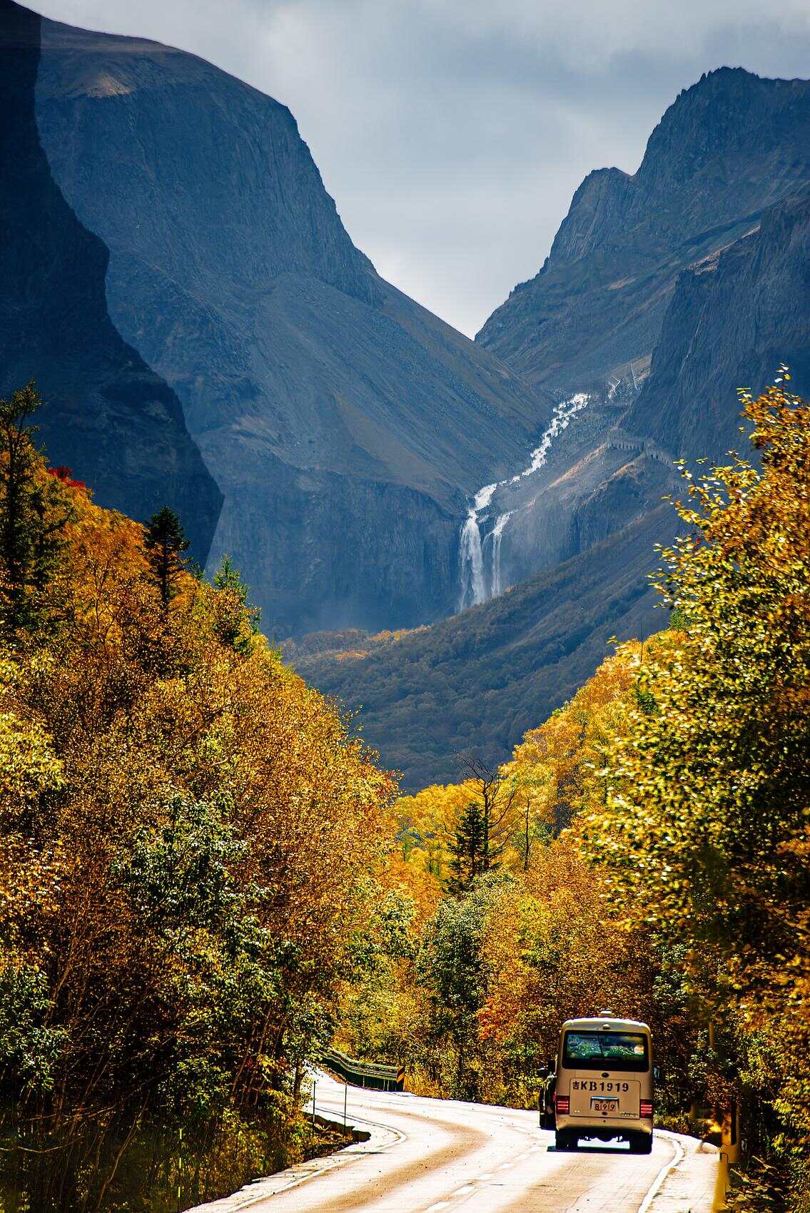 长白山的秋色“层次分明”,垂直、立体地从山脚晕染至山巅。针阔混交林、岳桦林、高山苔原带依次换装,墨绿、金黄、赤红、赭石交织成巨大的“五彩山”。
