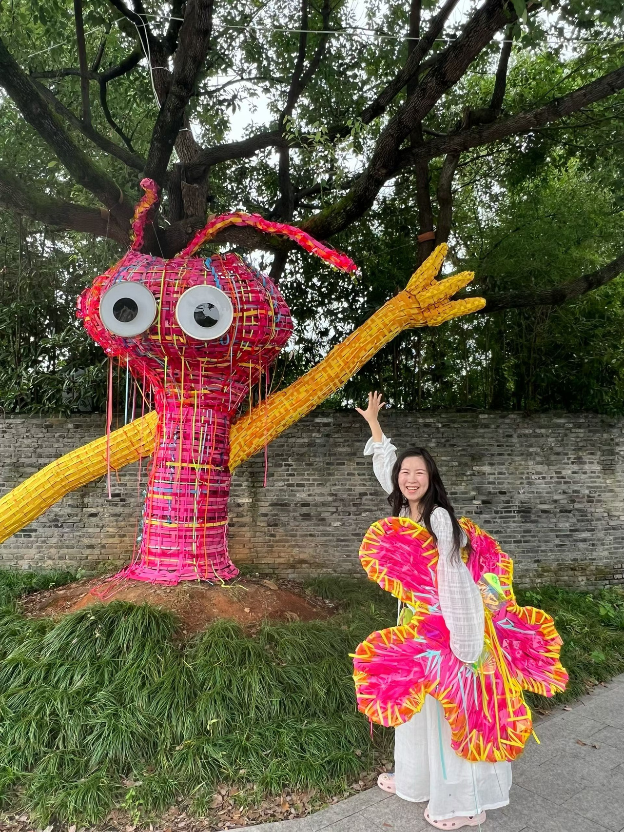 而最让人眼前一亮的,是BAC艺术社区与中国美术学院街头的四棵树——它们悄然“换装”,化身“树精灵”,披上绚烂的艺术“新衣”,成为市民游客镜头里、朋友圈中一道流动的风景。