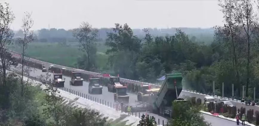 眼下,五河至蒙城高速公路项目施工进入最后冲刺阶段,施工人员正组织车辆卸料,摊铺沥青,五蒙高速04标段路面施工班组组长胡腾伟表示,距离主线全部贯通还有两公里左右,争取在假日期间把主线抢通。