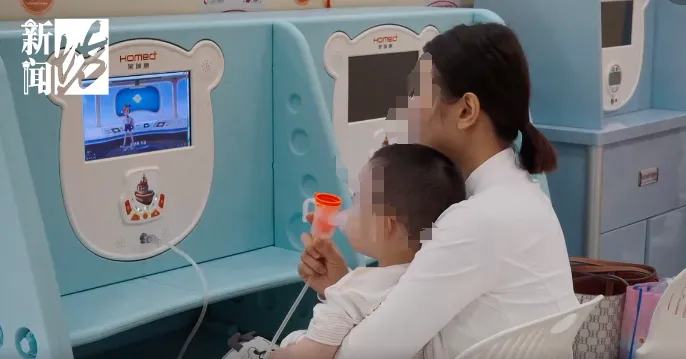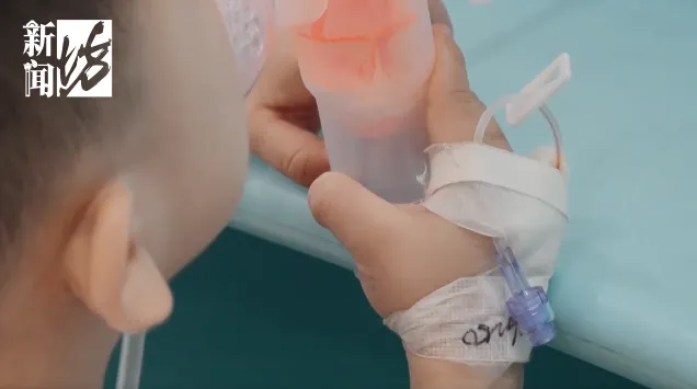 在治疗室里,手上带着输液留置针做雾化的孩子不少。大多都是感染了呼吸道合胞病毒的5岁以下儿童。