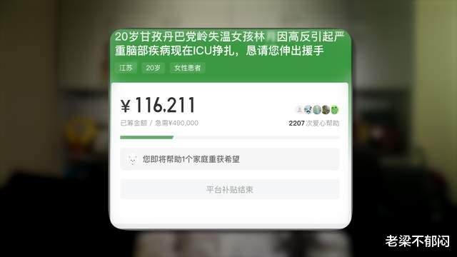 而且这里有一个永恒的难题,就是到底什么情况才能获取捐赠,不同人的观点是不一样的,有些人觉得她遇到困难了就可以求助,你觉得不合适你可以不捐,但是有的人觉得必须得到了山穷水尽,卖房卖车借钱贷款,那你才能求助,而且有些人认为如果没到这个程度出来求助,是消耗社会的善意,反过来有些人会觉得你质疑这个才是消耗善意呢。