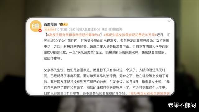 另一方面媒体报道其实有点问题,这个事儿一开始莫名其妙把重点放到了搭子身上,包括有的媒体说是丢下抛弃,但是从现在信息看,这个说法至少是有争议的,而高反女孩通过这个报道获得的关注,包括有一些捐款可能也是来自这个渠道,那一旦这个报道出现争议,不可避免会波及到女孩这边。