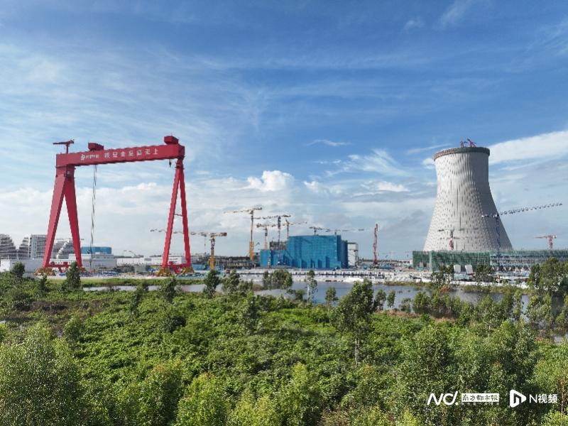 值得一提的是,廉江核电项目在国内首次采用海水二次循环冷却技术,并在我国核能领域首次开发使用超大型高位集水海水冷却塔,被誉为“世界核电第一大塔”。9月17日,廉江核电1号机组冷却塔主体结构施工完成,即将全面进入塔内构件安装阶段。