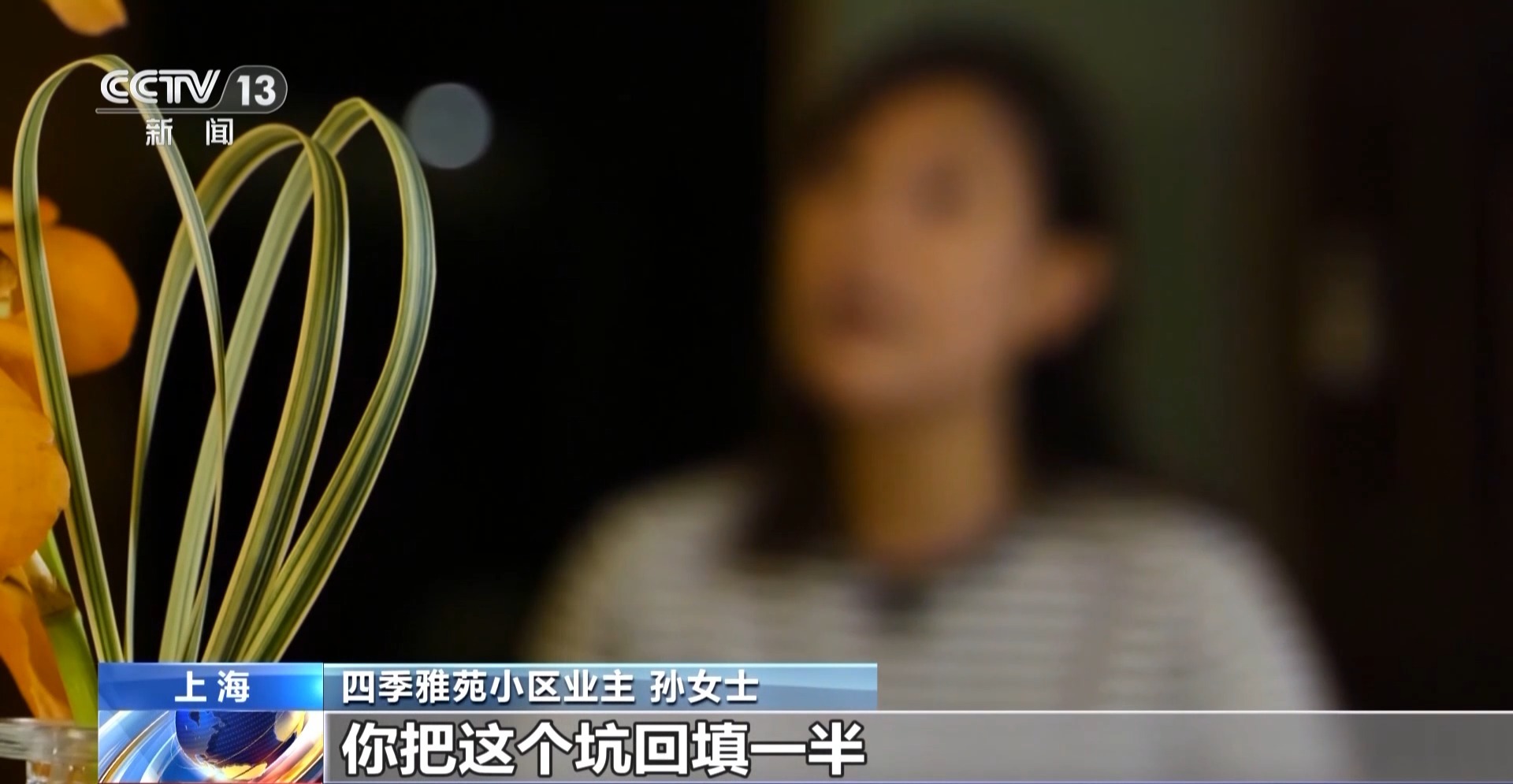 四季雅苑小区业主孙女士:你把这个坑回填一半,留出我们的安全距离,给你保留一部分,同时要负责把我家坏的地方去把它修好。