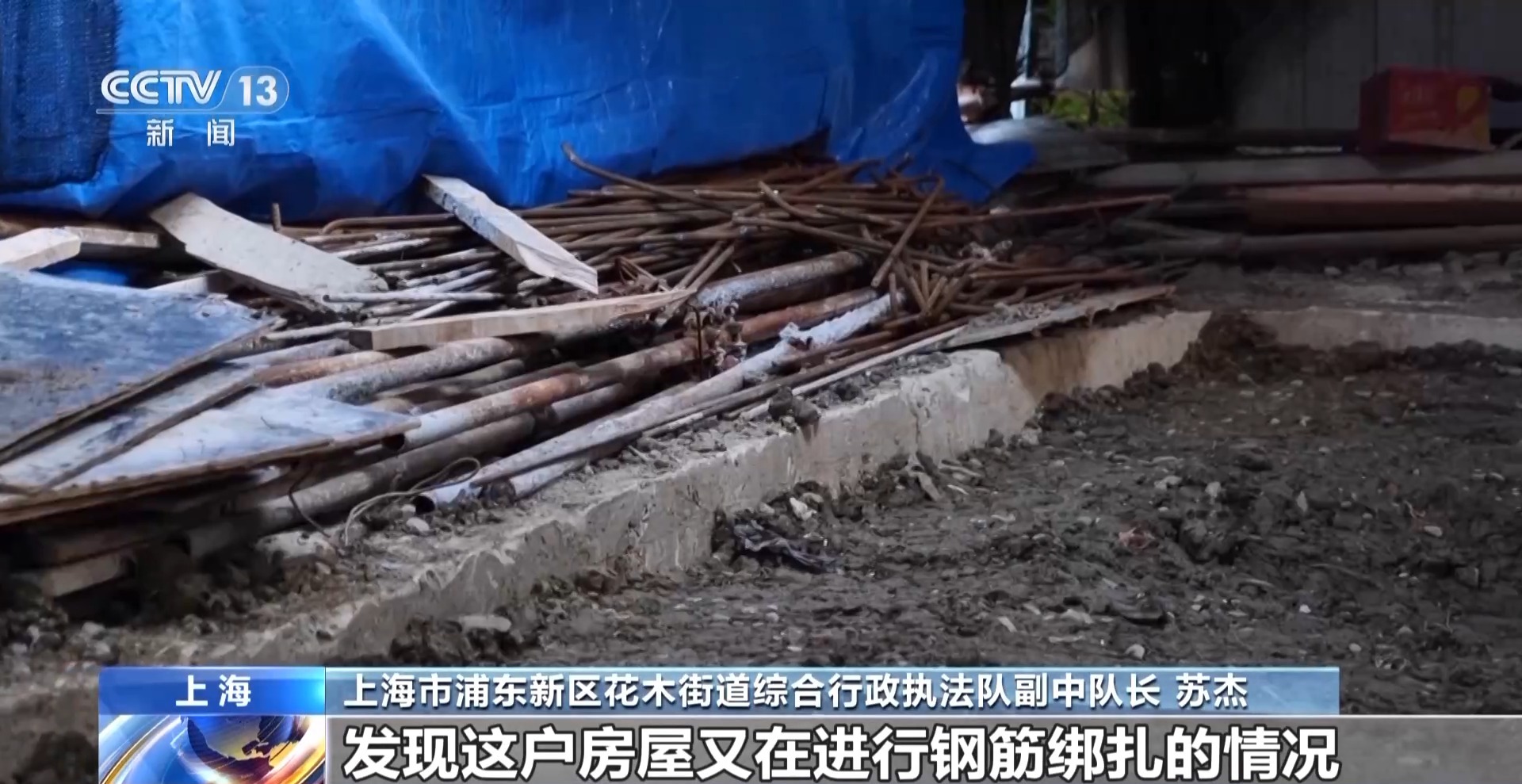 上海市浦东新区花木街道综合行政执法队副中队长苏杰:因为现实的客观情况,我们是无法做到每日对每一套房屋进行巡查。一直到10月27日的时候,发现这户房屋又在进行钢筋绑扎的情况,我们当时就要求再次责令停止施工。到11月12日的时候,我们接到热线投诉工单,到现场发现有铺设钢筋这个情况,现场立即要求停止施工,并且发现他的整改恢复时效比较缓慢,所以随即进行立案处理。