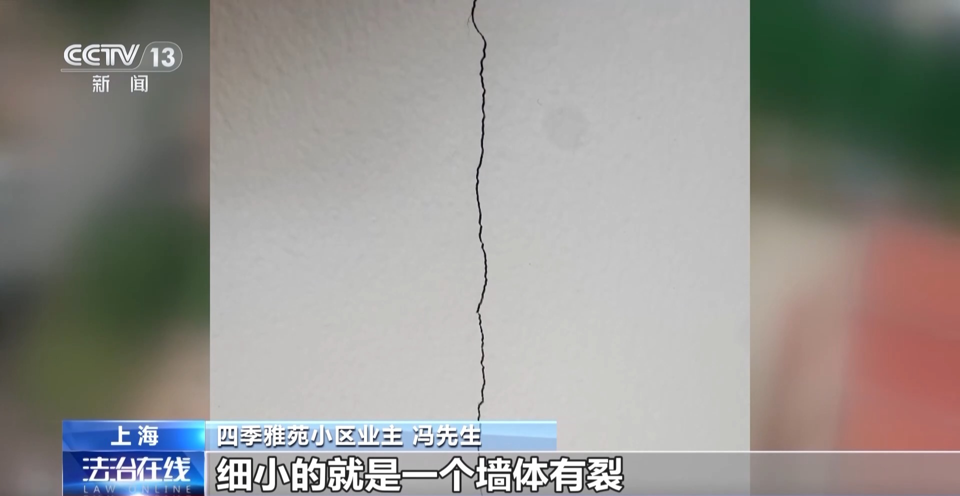 四季雅苑小区业主冯先生:以前是没发现的,我邻居发现了问题以后,她跟我说的时候,我还说我家好像没有,然后过两天就发现墙体裂了。