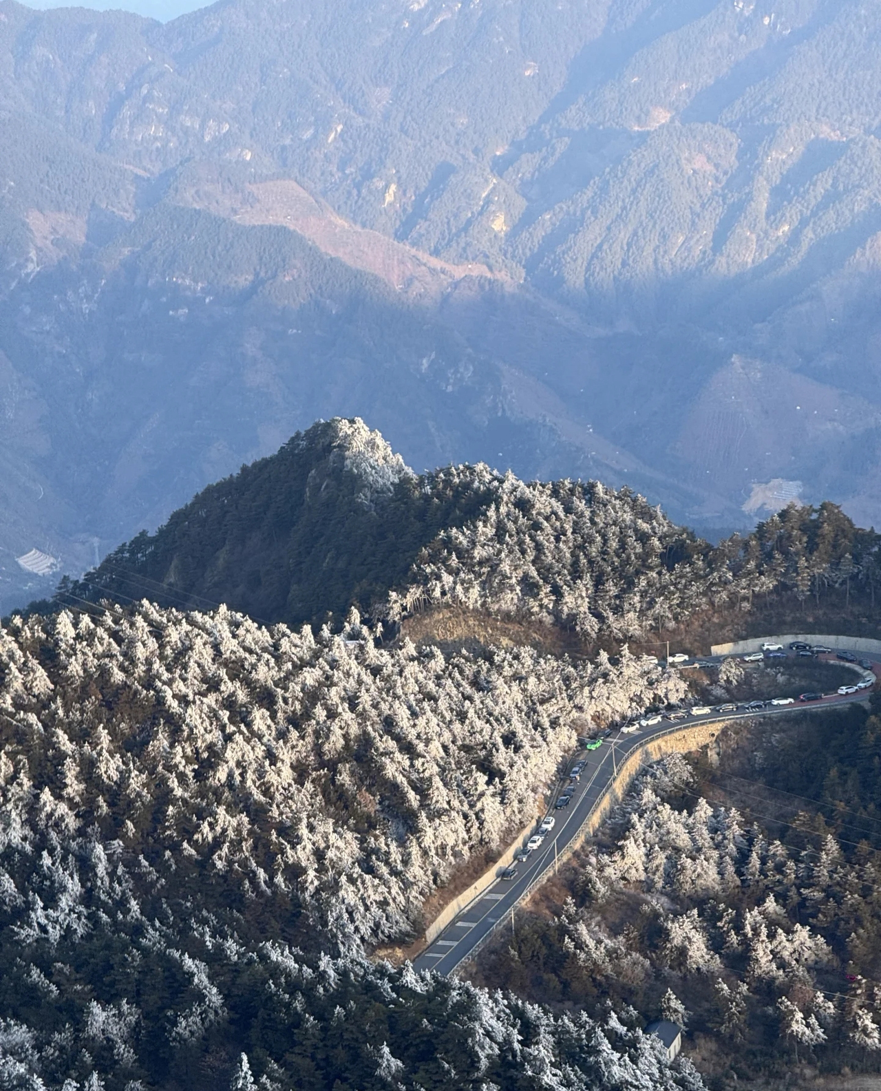 前来看雾凇的车子排起长队临安气象局供图