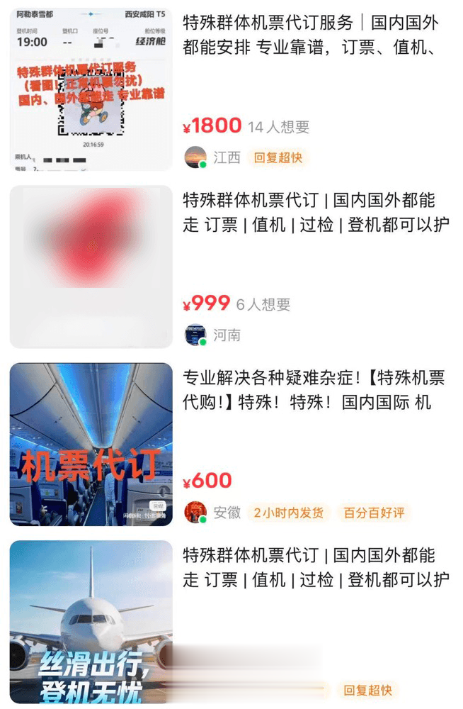 为什么这些人还能成功购票?在社交媒体和二手交易平台,记者发现有不少号称能“解除限高”“代订机票”的中介。记者以被“限高”人员的身份联系了一个代订中介,对方表示,曾经有人利用新旧版护照更替产生的信息“时间差”实现订票,但目前这种方法已不可行。