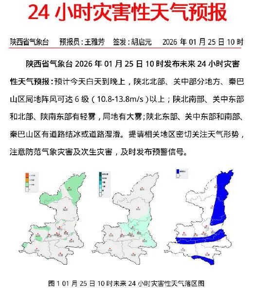 26日:陕北、关中多云转晴天,陕南多云间阴天、南部有小雪或雨夹雪(0~1毫米)。