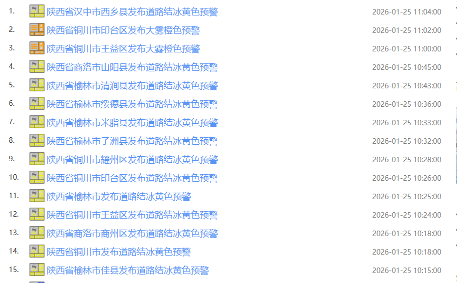预警发布:昨日至今晨全省共发布大风黄/蓝色预警信号33期,沙尘暴黄色预警信号1期,道路结冰黄色预警信号32期。外出注意安全!