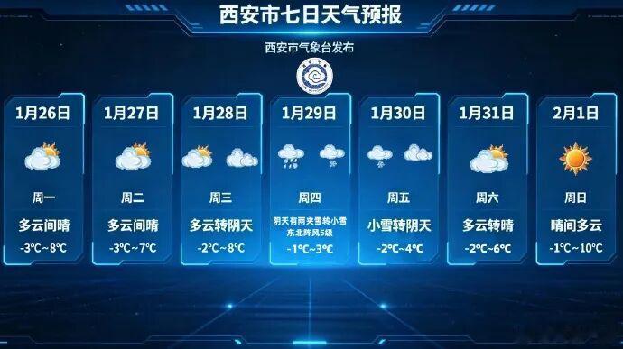 1月26日,据西安气象消息,29—30日,西安将有一次雨夹雪转小雪天气,并伴有5级左右阵风,气温下降明显。