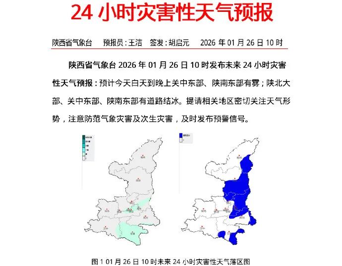 陕西省气象台2026年01月26日10时发布未来24小时灾害性天气预报: