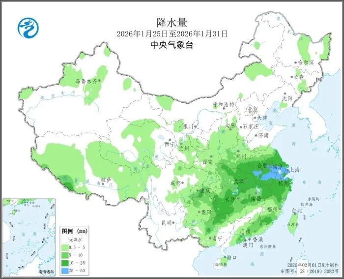 上周(2026年1月25日至2026年1月31日),全国大部农区气温接近常年同期或偏高1到4℃,内蒙古东部、东北地区大部偏低1到4℃,局地偏低4到6℃。