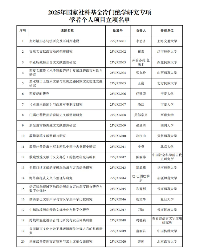 近日,全国哲学社会科学工作办公室网站发布《2025年国家社科基金冷门绝学研究专项立项名单公布》,浙江多个项目获国家级立项。