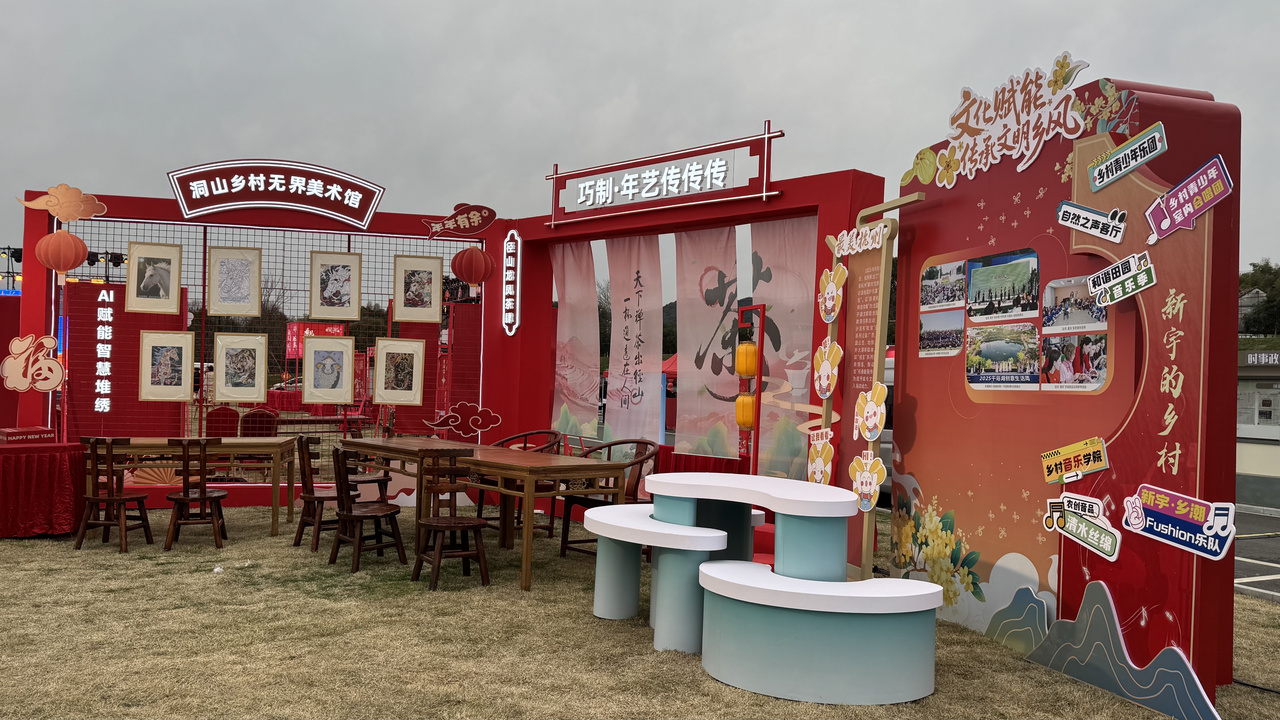 此次活动,力图真实还原并创新那些最具仪式感的年俗,让这群特别的“文化街坊”陪村民过年。村民已经在“全家福福福”区,用手机拍下了和家人的合影,这是每个家庭最生动的编年史;在“年艺传传传”板块,智慧堆绣作品已经挂上了“洞山乡村无界美术馆”的红墙,感兴趣的村民早早地就来询问如何才能在新年的家中也Get到同款……