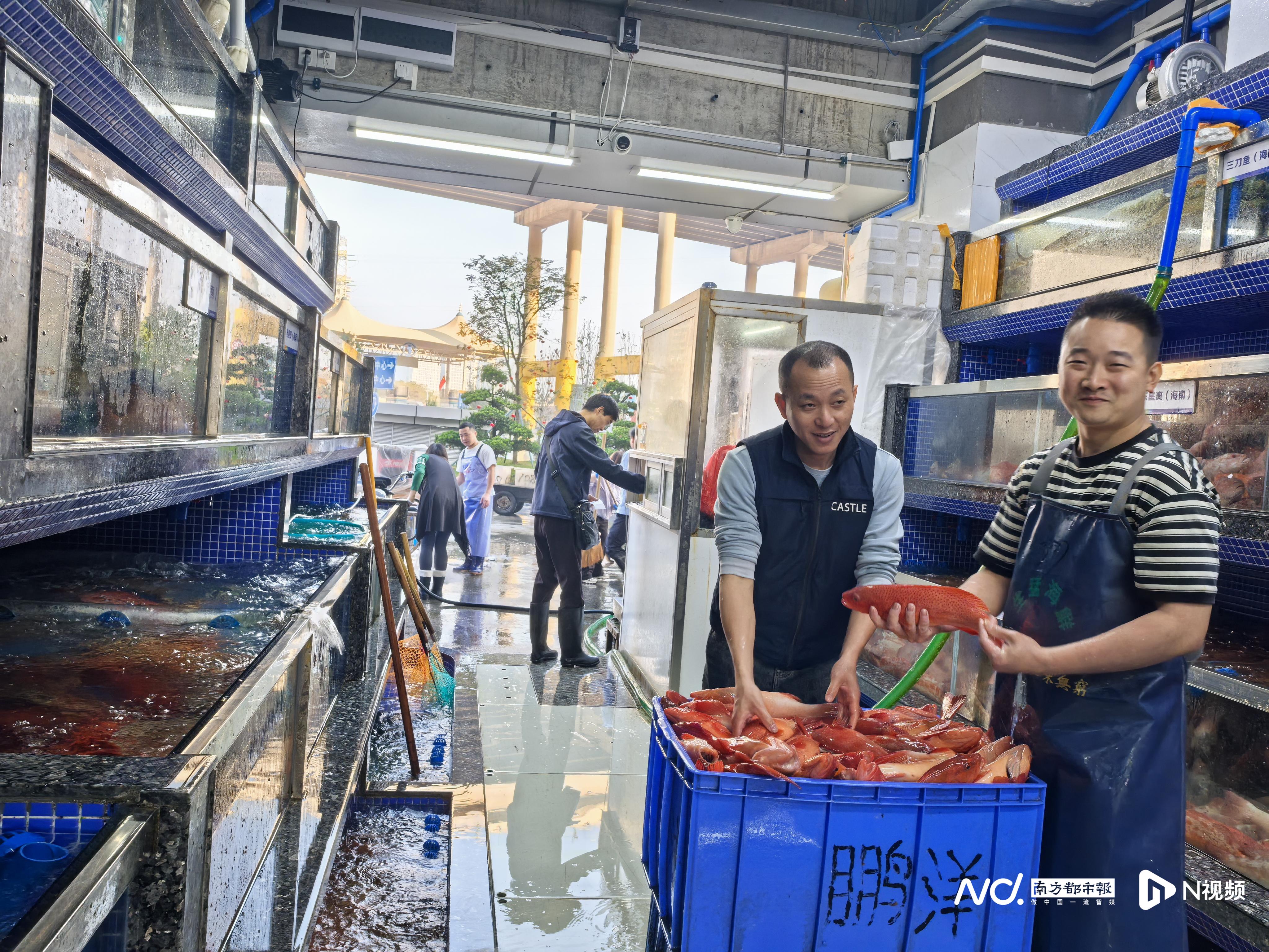 去年黄沙水产中心焕新升级后,位于广州市荔湾区东洛围码头的新市场聚焦市场环境、服务品质、数字赋能等重要领域,正在打造成为立足广州、服务湾区、面向全国、链接全球的现代水产产业新标杆,让“食在广州”金字招牌再添异彩。开张当日,不少市民告诉记者特地打车过来帮衬新市场。