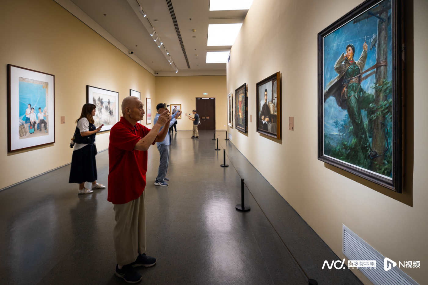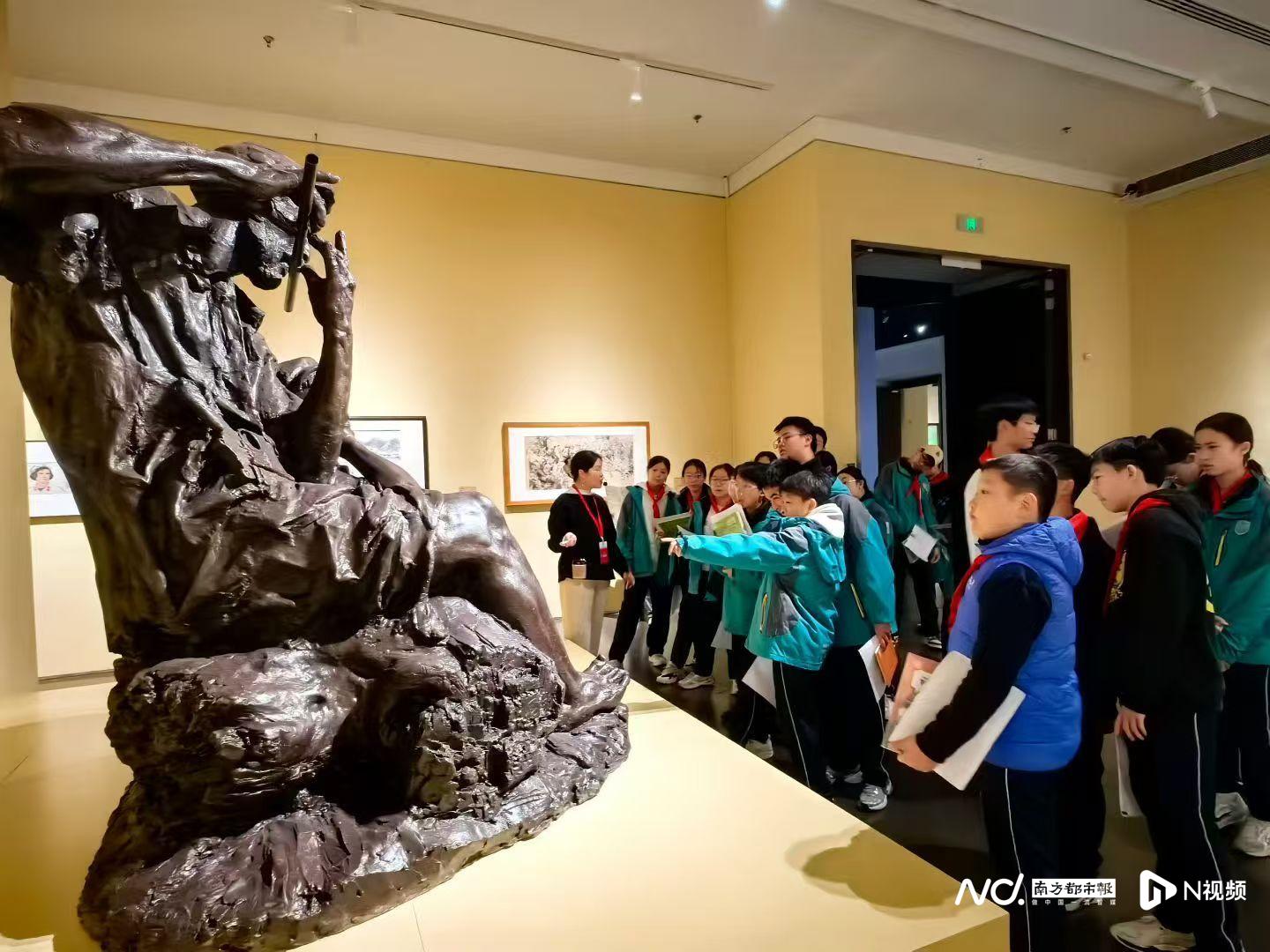 展览以宏大的规模和沉浸式的体验,收获社会各界广泛赞誉,实现了全年龄段观众因热爱而共振的动人景象。观众或驻足欣赏经典名作,或仔细阅读展品说明,或与同伴交流观感。岭南画派创始人高剑父、陈树人、高奇峰的经典画作,关山月、黎雄才的巨幅山水,杨之光、林墉的人物画精品,以及黄新波、古元、李桦等新兴木刻运动代表人物的版画作品,成为观众争相拍照打卡的焦点。许多观众表示,能够一次性欣赏到如此多广东美术大家的代表作,机会难得,深感震撼。