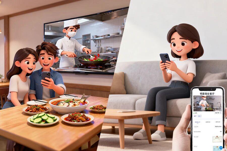 某连锁茶餐厅负责人表示:“开通了电信的套餐,还可以接入美团的明厨亮灶和饿了么的透明厨房,流量也多了,而且以前后厨管理靠人盯,难免有疏忽。现在装了电信的AI摄像头,员工操作更规范了,省心了很多!”