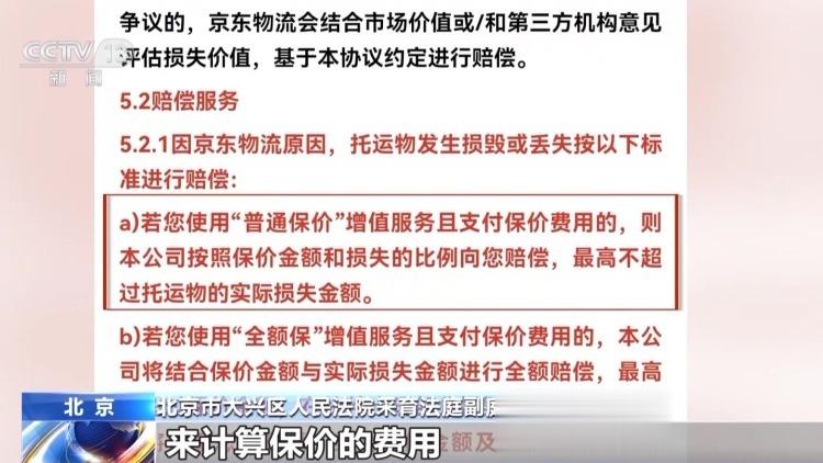 北京市大兴区人民法院采育法庭副庭长宋杨:快递服务协议约定,保价情况的话,根据保价金额以及损失比例来计算保价费用,且不得超过托运物的实际损失,所以法院根据这个约定进行裁判。