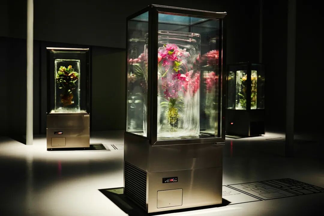 在去年的《四方自然》个展中东信创作了一个巨型温室缸2025年底,东信在上海西岸举办了个展《四方自然》,与中国匠人合作打造了巨型温室缸(Paludarium)、冰花、丙烯花……观众感叹:竟在花身上,共情到生命的激情。一条和他聊了聊。他说,“用植物和花卉创造一个人类从未见过的世界——这种渴望,会伴随我到生命终点。”自述:东 信