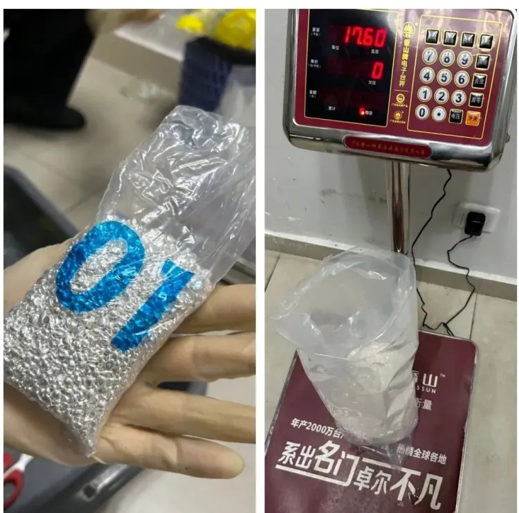 当日16时许,海关关员在港珠澳大桥珠海公路口岸进境客车通道监管时,发现一辆粤港两地牌客车机检图像异常。经进一步检查,关员在车头底盘改装的暗格内查获16包疑似银粒的贵金属物品,共计17.55千克。