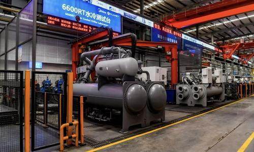 重庆美的通用制冷水机智造工厂生产场景(企业供图)