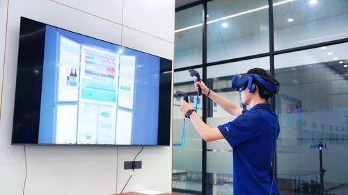海尔重庆冰箱互联工厂同样智能感拉满:数十台机器人自动完成能耗标粘贴,超10万个数据点位互联互通,实现智能调度、产销协同。“AI视觉定位让工序零差错,效率提升30%以上。”项目负责人牟泽军说。