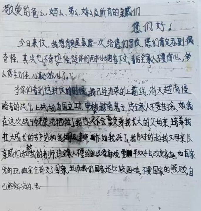 他还记得,在部队时有一次到陕西省武功县送通知,刚到时家属还在说笑,当抚恤金和通知书摆到桌上时,那位妈妈的手就开始抖,爸爸则轻轻地问:“光荣是什么意思?我儿子光荣是什么意思?他不幸光荣了,是不是死掉了?”