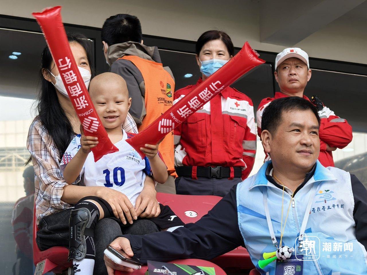 而在进场前,不少观众还认出了瑞瑞:“你就是那个喜欢踢足球的小男孩吧?”他们也为瑞瑞加油。