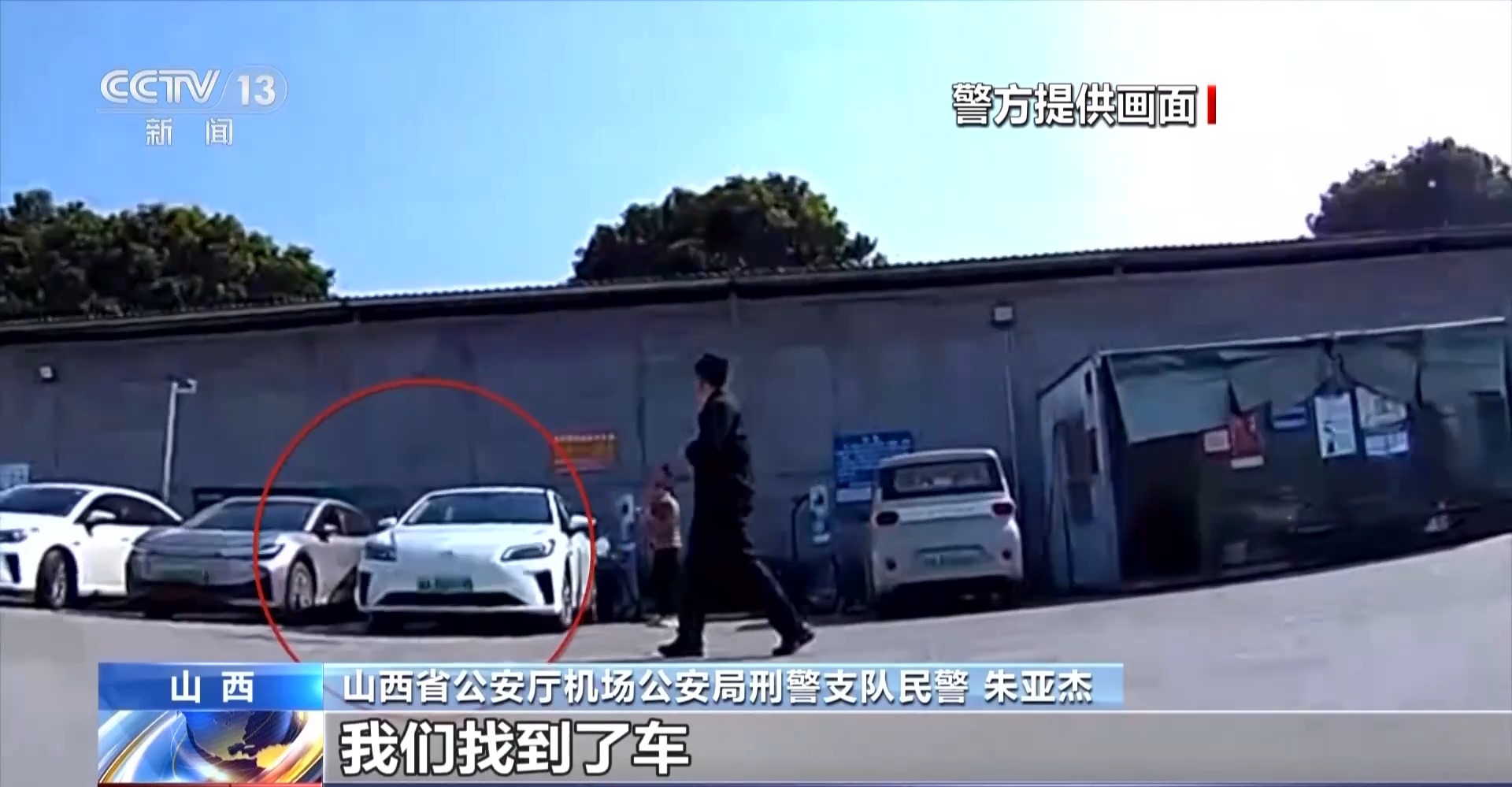 山西省公安厅机场公安局刑警支队民警朱亚杰:郑伟在广东从事网约的顺风车,在城际之间进行工作,对我们抓捕工作产生了很大的困扰,因为他没有一个固定的居住地点。后来在他一个短暂停留的充电站,我们找到了车。当时车在充电,郑伟应该是在周边吃午餐,我们立马在车的周边进行了部署,10分钟左右,郑伟出现在他车这个充电站周围,我们就与他接触上了。