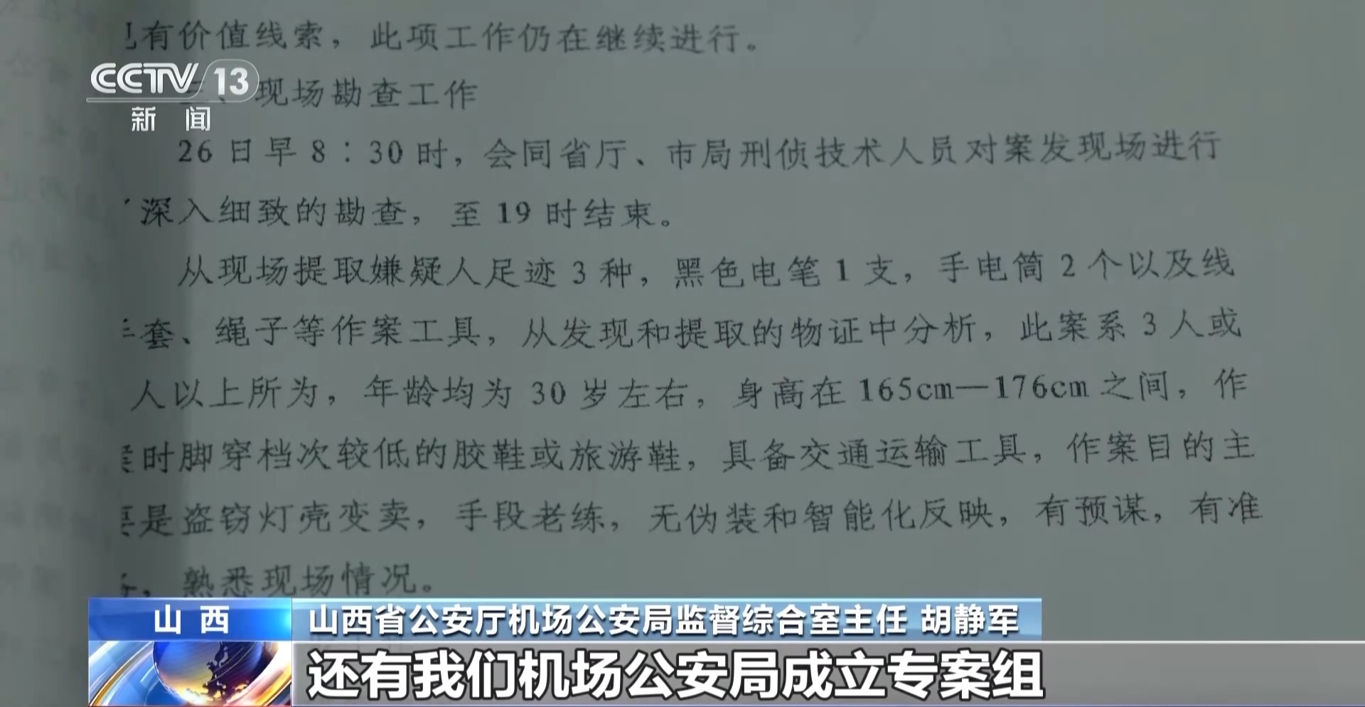 山西省公安厅机场公安局监督综合室主任胡静军:2003年我是参加工作第三年,当年我还作为一名新警在刑警队参与办理了这起案件。当时是民航局公安局督办,然后山西省公安厅,包括太原市公安局小店分局,还有我们机场公安局成立专案组,一起来侦办这个案件的。