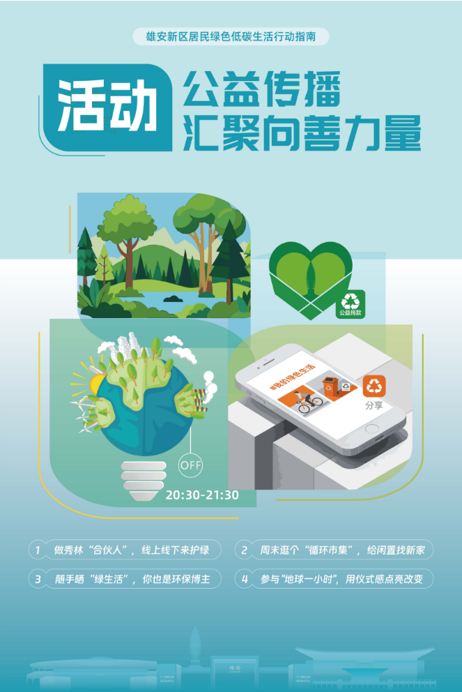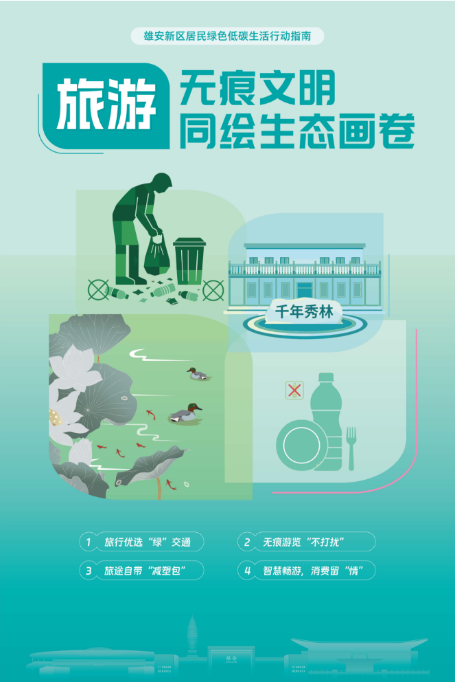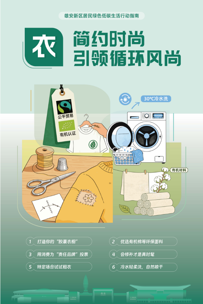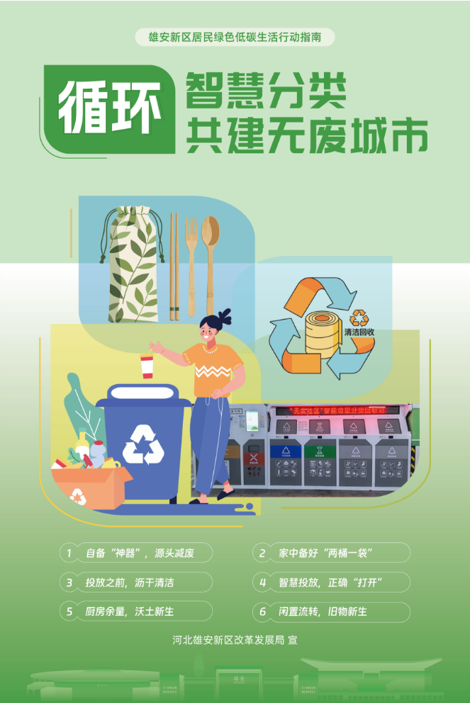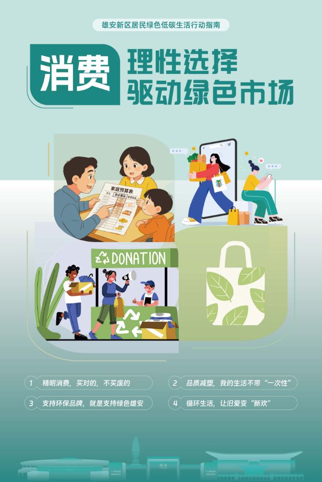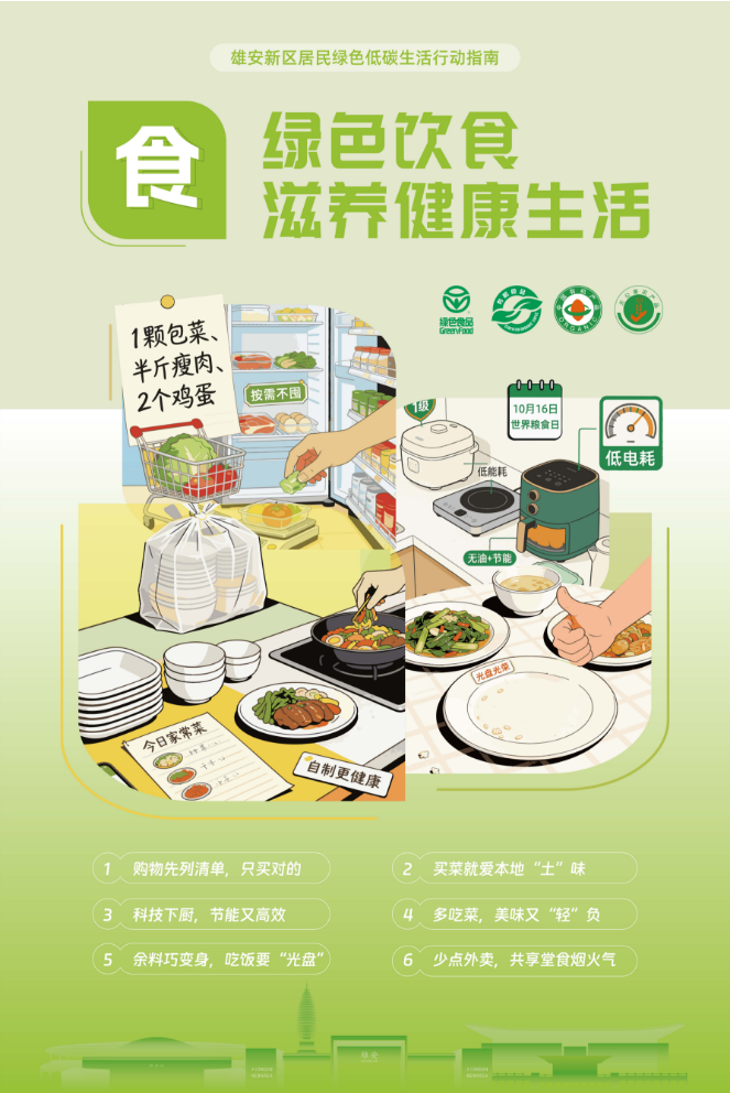 为助力居民更轻松、更积极地践行绿色生活,本指南融合雄安“无废城市”“数字城市”的创新理念,从居家生活、出行方式、消费习惯到社区参与,提供实用、有趣且易操作的行动建议。让我们从点滴开始,将绿色低碳融入衣食住行,共同塑造未来之城的文明风尚,让生态之美与生活之便交相辉映,书写属于雄安的绿色篇章。