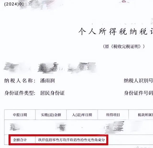 不过,3月14日,坐拥774万粉丝的抖音网红“潘雨润PanYR_”公开展示了自己的收入情况,从其公布的个人所得税纳税记录来看,纳税金额高达9503万元!有网友评论称:“这个博主交了接近一个亿的税!只是税!”