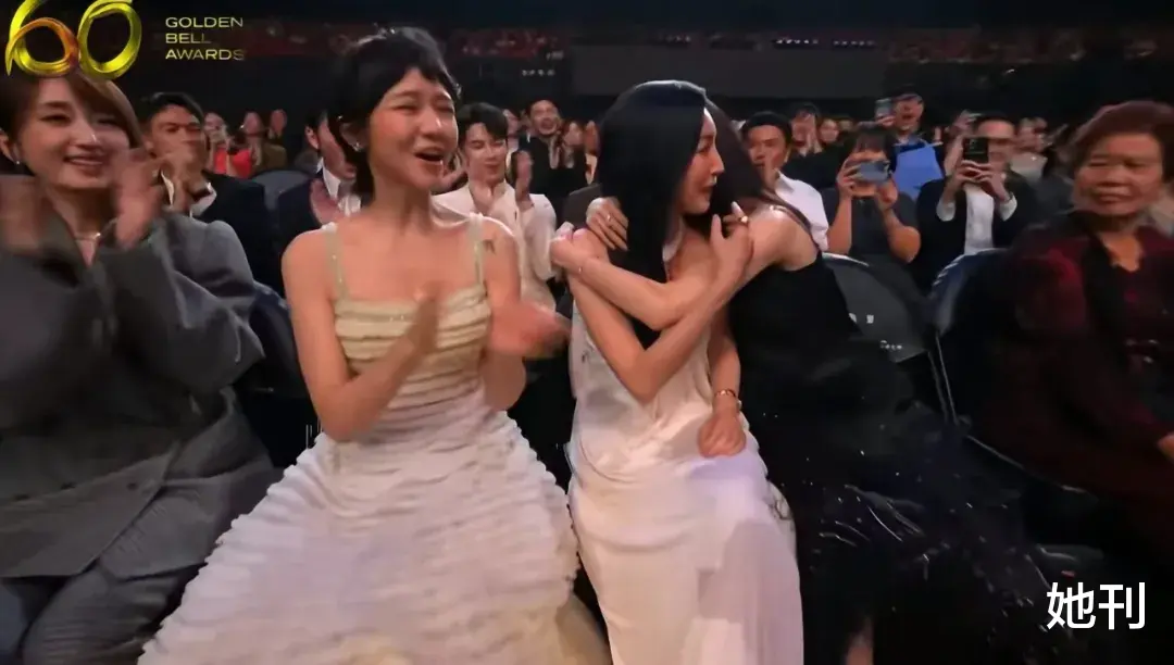 这个吻,伴随着杨谨华对“雌竞”叙事的公开质问:“为什么女演员一起入围就会被当成敌人? 你看下台下的男演员,怎么可以这么peace!”