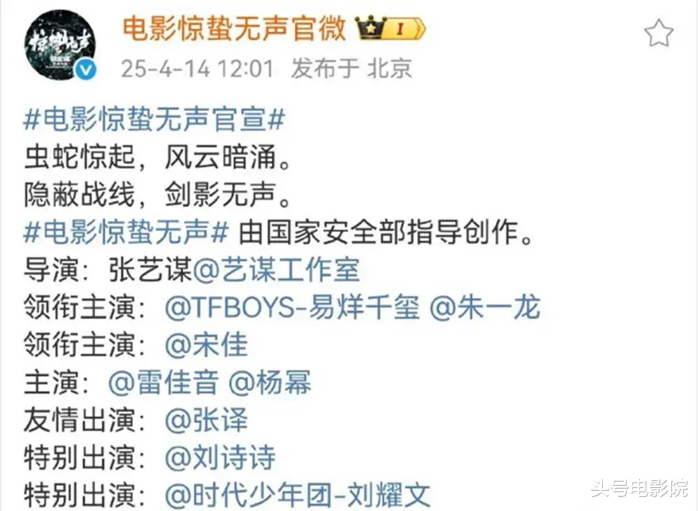 《惊蛰无声》是中国首部聚焦当代国家安全的电影,影片的拍摄一直很低调,但阵容一点也不低调,可以说是集国内电影圈实力和流量并重的顶级阵容: