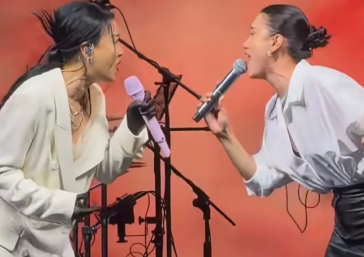 面对天后级别的歌手,宋佳也没怯场,大大方方地跟对方一起唱歌,还跟随着节奏轻轻扭动身体,松弛感直接拉满了。