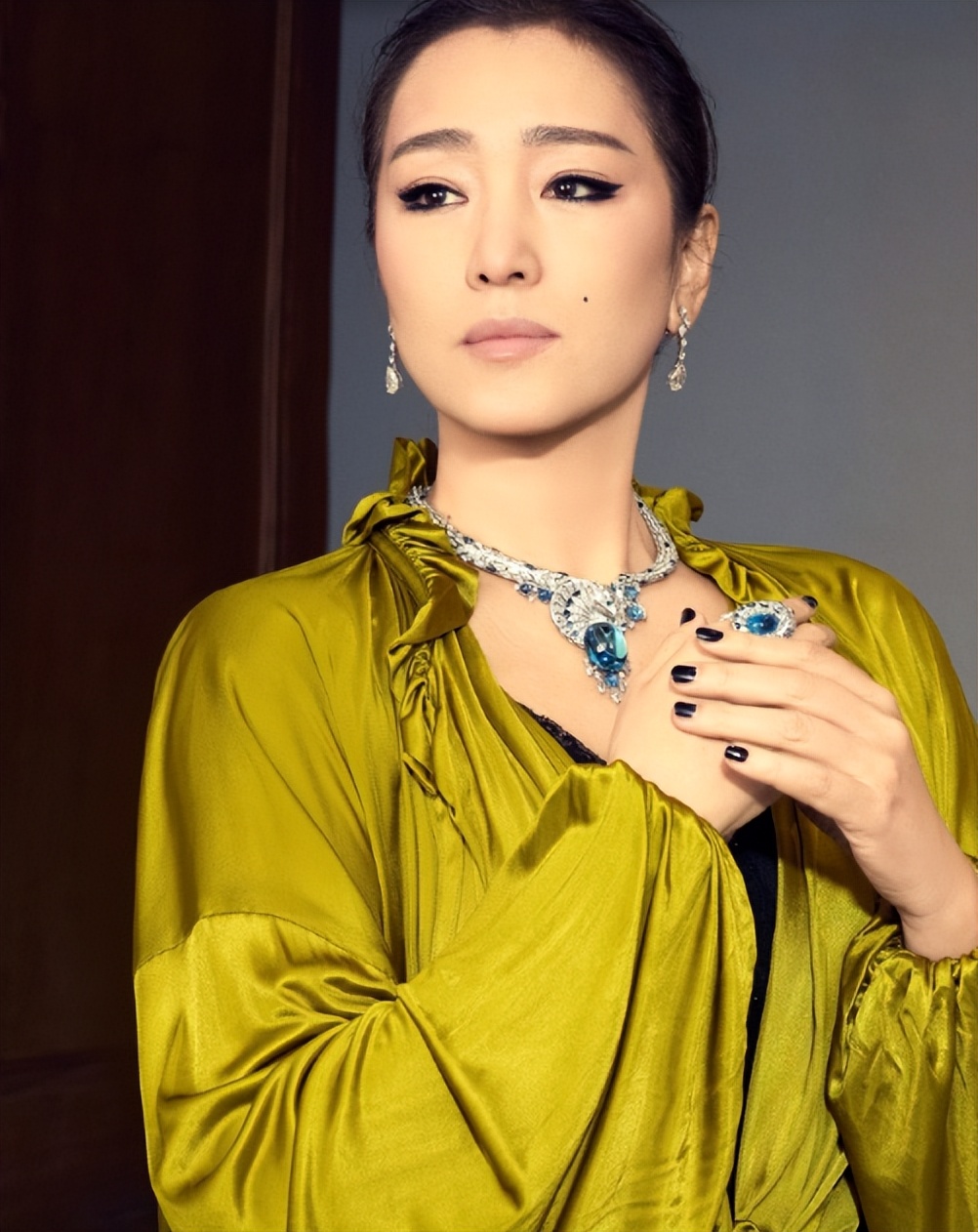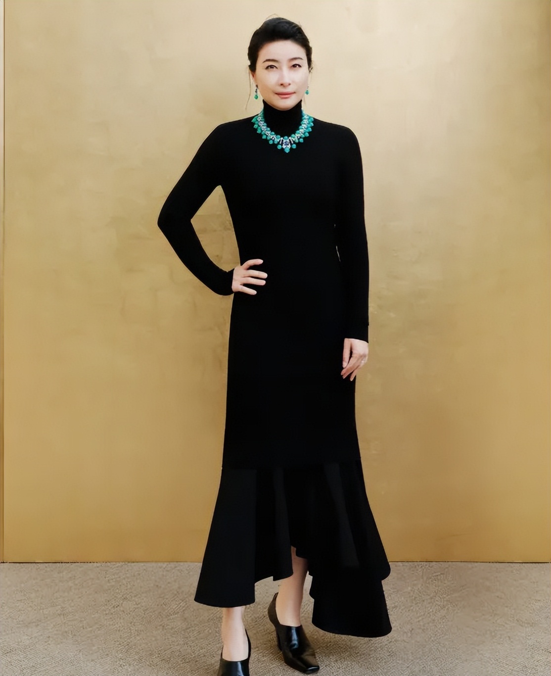 姐依旧是那么的女王范十足,一袭黑色丝绒长裙与缎面绿色外套,高级感拉满,但穿在巩俐的身上,完全是“衣服靠人”,只需要随随便便往那里一站,身上的女王气场瞬间蔓延开来,完全是巨星范儿。