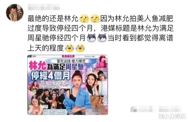 林允为了拍《美人鱼》减肥过度,导致停经4个月,港媒起标题:林允为满足周星驰停经4个月。