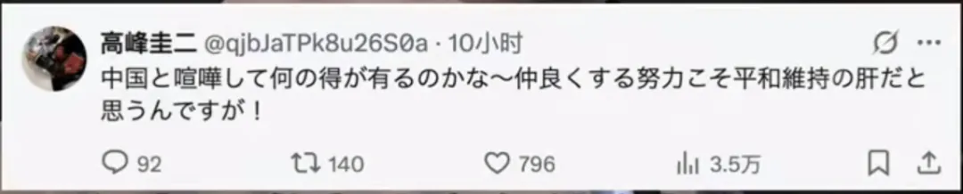 11月17日,曾出演日本特摄剧《艾斯奥特曼》人间体“北斗星司”的日本演员高峰圭二在社交平台X上发文质问高市早苗。