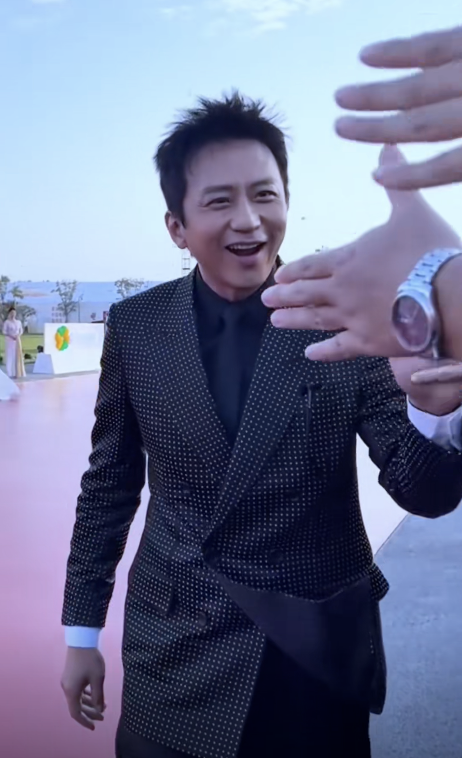 像刘浩然,与几位导演同框,比别人白了几个色号。