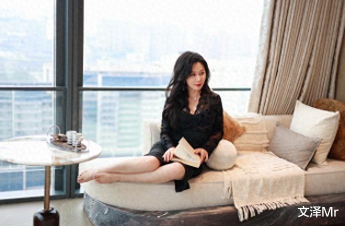 她双腿交叠,赤足,以一种全然放松的姿态沉浸于阅读。手轻抚书页,周遭的毛绒靠垫和米色毛毯营造出极度舒适的私密氛围。没有多余的言语,只有阳光、书籍和她本人。这张照片是她褪去博主光环后最本真的状态——安静、文艺,充满了内在的力量。她的美,不只有视觉的冲击,更有一种让人心安的静谧感。