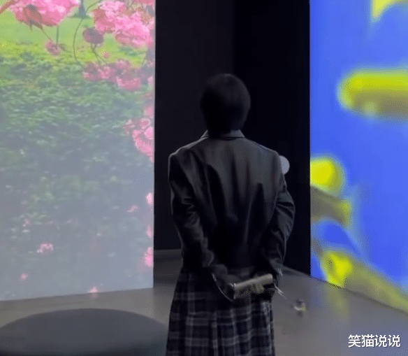 宋慧乔还晒出了她在看场时的其他照片,她在展厅里看着出展的艺术作品,时而漫步,时而负手而立,看起来十分放松。