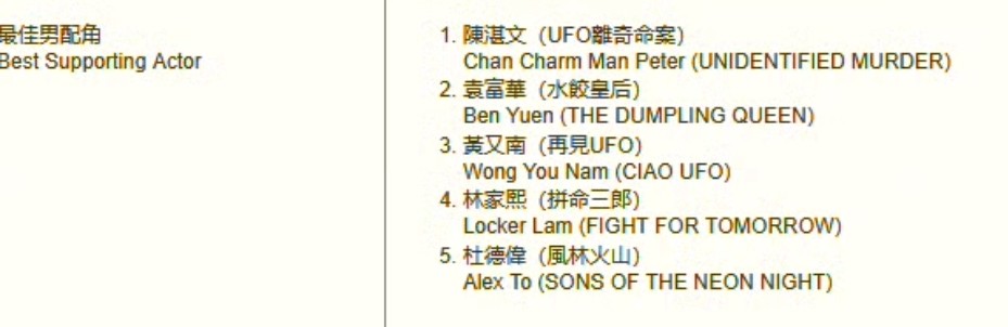 在这些男配角中,几位港圈演员如陈湛文、黄又南、林家熙,对内地观众来说虽然陌生,但他们获得提名完全是凭实力。