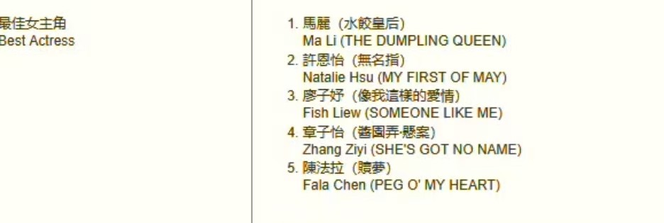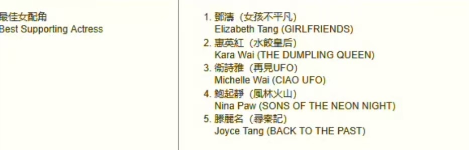 四,最佳女配角