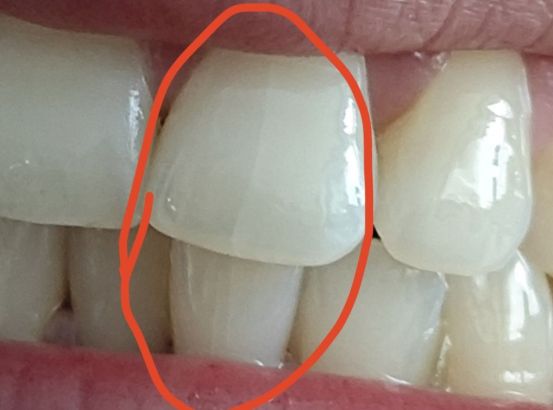 当初做的时候没考虑到这一点,现在就形成了这种尴尬的色差,而且医生还特意提醒她,现在每次大笑都得刻意控制嘴角的弧度,不能笑得太放肆,不然下牙的黄色会更明显,还可能因为发力不当损坏上排的贴片。