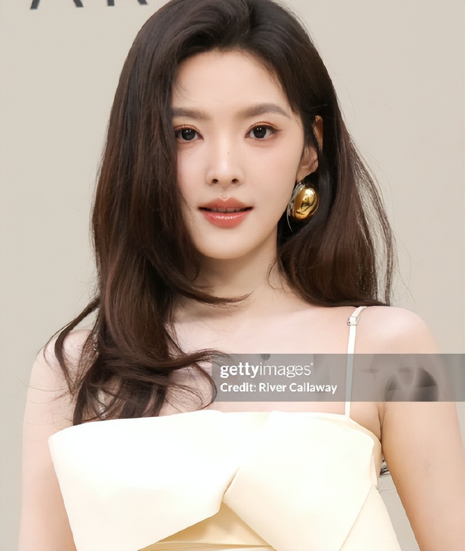 一袭淡黄色吊带裙,衬得她更加白皙,头发浓密到看不见发缝,仪态优雅,整个人仿佛自带柔光滤镜,美的闪闪发光。