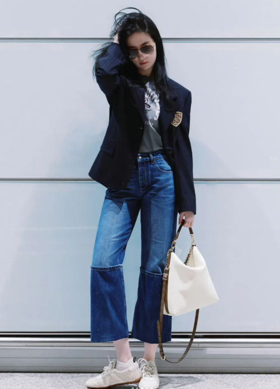 在机场的路透中,她身穿率性利落的条纹西装搭配浅色牛仔裤,身材很明显瘦了不少,状态也很惊艳,飒气几乎要突破屏幕。